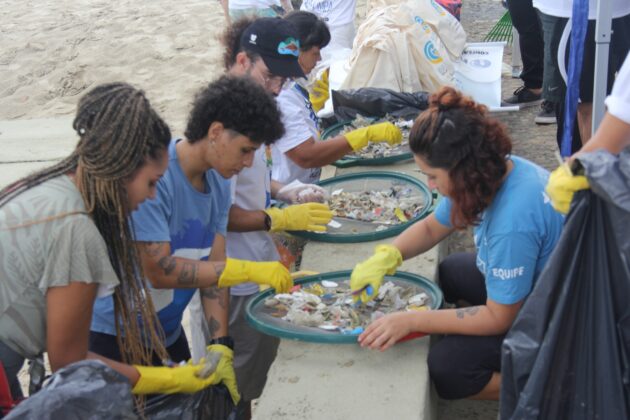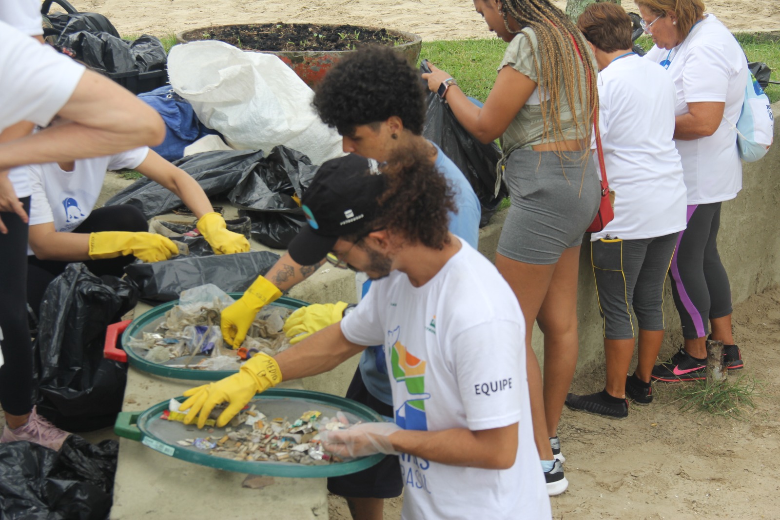 Iniciativa da AEAPG promove palestras sobre soluções baseadas na natureza e ação prática de remoção de resíduos na areia para conscientizar sobre a preservação do ecossistema costeiro_